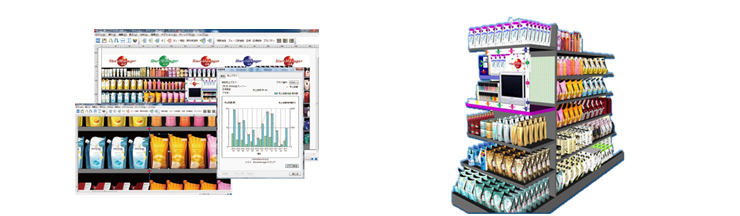 | 基本セット | 基本セット | モデル設定→棚設定→品揃え→棚割といった棚割作業に必要な操作および関連帳表の出力が行えます。また、商品の陳列状態の分析や、ストマネ用交換データの入出力が行えます。 |