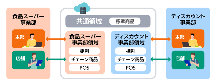 1つの棚割システムを契約法人内で共用し、業態や事業部ごとにデータ領域を分けて運用することが可能です。