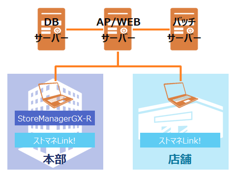 StoreManagerGX-Rは、サーバー1台が最小構成です。ストマネLink!が加わるともう2台必要になります。