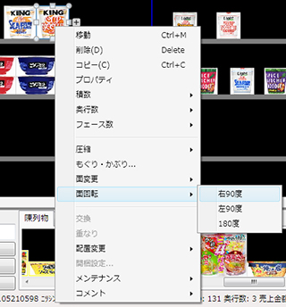 対象商品やゴンドラを選択して、右クリックでのポップアップメニューで、移動、削除、コピーなどを行います。