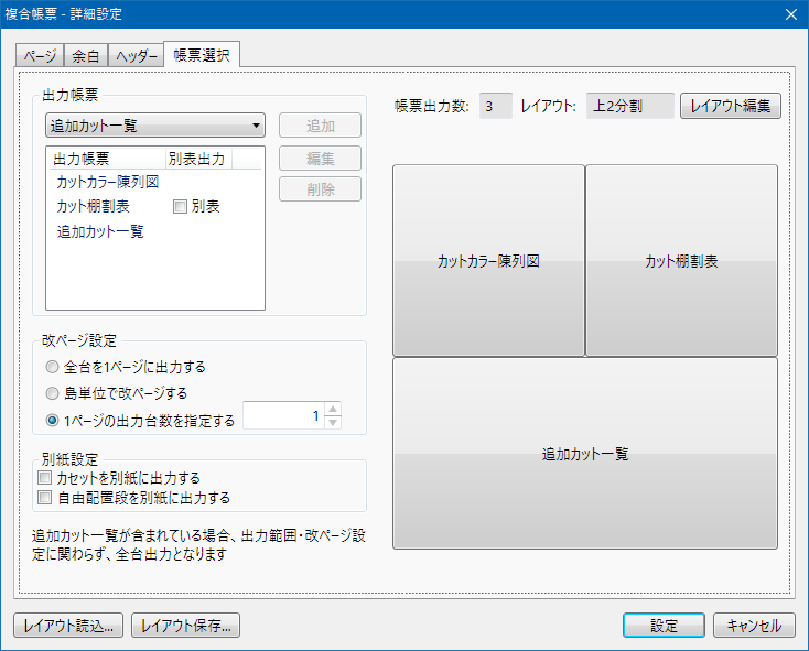 陳列指示の帳票は最大4つまで組み合わせて自由に作成できます。