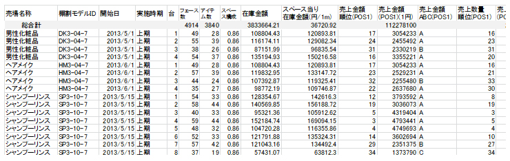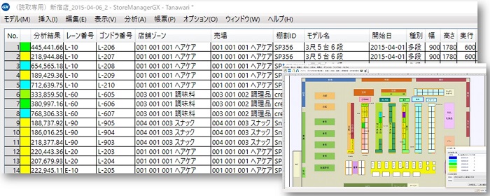 店舗レイアウトに店舗のPOSデータを割り付けて、