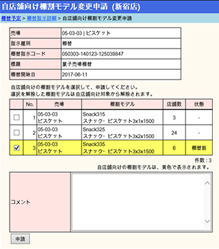 店舗は採用商品やパターン変更を本部に申請することができます。