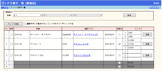 店舗で、店舗が実施する採用棚割に使用する店舗固有のゴンドラ番号を登録することができます。 店舗で配置されているゴンドラと採用棚割が紐づけられることにより、棚割(=売場)の位置の特定に役立ちます。